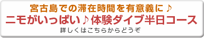 南西楽園リゾ-トのホテル、ブリッサやブリ-ズベイマリ-ナ、シギラベイサイドスイ-トアラマンダからは5分、宮古島東急リゾ-トからでも10分位で到着いたします。定番の伊良部島・下地島方面とはまた趣の異なるポイントが多く存在し、他のダイバーも少なく、さらには港からポイントまで近く、船酔いが心配な方でも快適に楽しんで頂くことが出来ます。